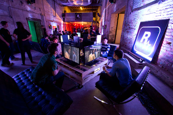 Ridiculously expensive lunch finished, followed by an hour of rest, it was now time for the main event. Rockstar reps came to meet us at the hotel with a few cars to whisk us away to a mystery location. Upon arriving some of us realised where we were. A somewhat random warehouse in the city, we were here 2 years ago playing Red Dead Redemption! Rockstar had not finished setting up inside, so we stood around outside talking. Since this was New York, the inevitable random-stranger-coming-up-to-us-for-no-apparent-reason thing happened. Some guy who had just come from a yoga class (yeah it's a real thing) with some female friends, asked us what we were all waiting for. Seeing Rockstar, GTA and Max Payne t-shirts we were adorned with, along with an obvious lack of girls, he quickly deduced we were gamers and journalists of some sort. And he wanted in. He offered booze and girls, but we had to decline, this was a fan site event God dammit! It's exclusive and shit, ya know!? He went on his way, and we went on inside.